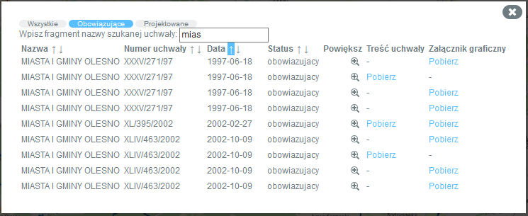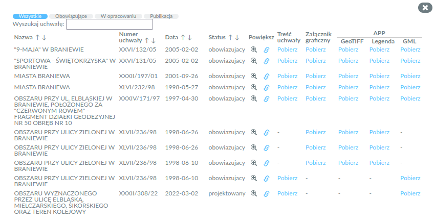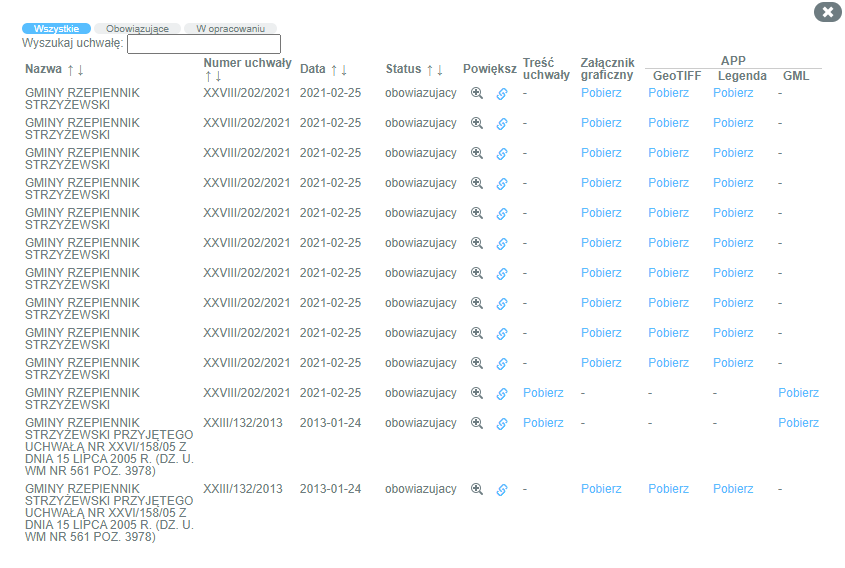 Nazwa Numer uchwały Data Status Powiększ Treść uchwały XML uchwały Załącznik graficzny APP