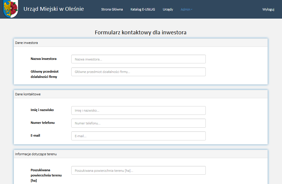 FORMULARZ KONTAKTOWY DLA INWESTORA
